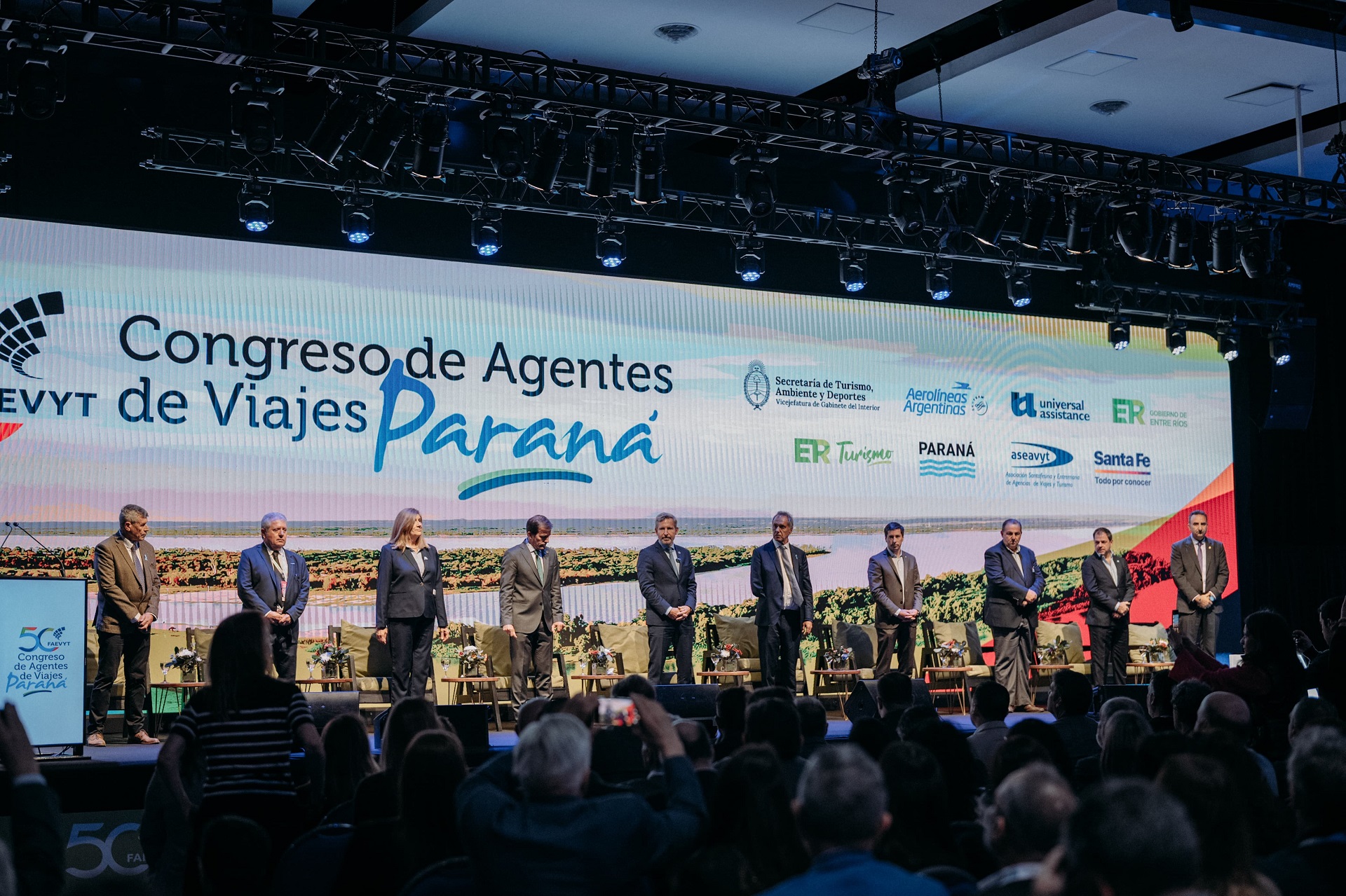 El 50º Congreso de Agentes de Viajes, que organizan la Federación Argentina de Asociaciones de Empresas de Viajes y Turismo (Faevyt) y la Asociación Santafesina y Entrerriana de Agencias de Viajes y Turismo (Aseavyt), se desarrolla en el Centro Provincial de Convenciones (CPC), en Paraná. En su apertura oficial, contó también con la presencia de los secretarios generales de la Gobernación, Mauricio Colello; y de Turismo, Jorge Satto. También de los intendentes de Paraná, Rosario Romero, y de Santa Fe, Juan Pablo Poletti; directivos de las entidades convocantes y funcionarios nacionales, entre otros.